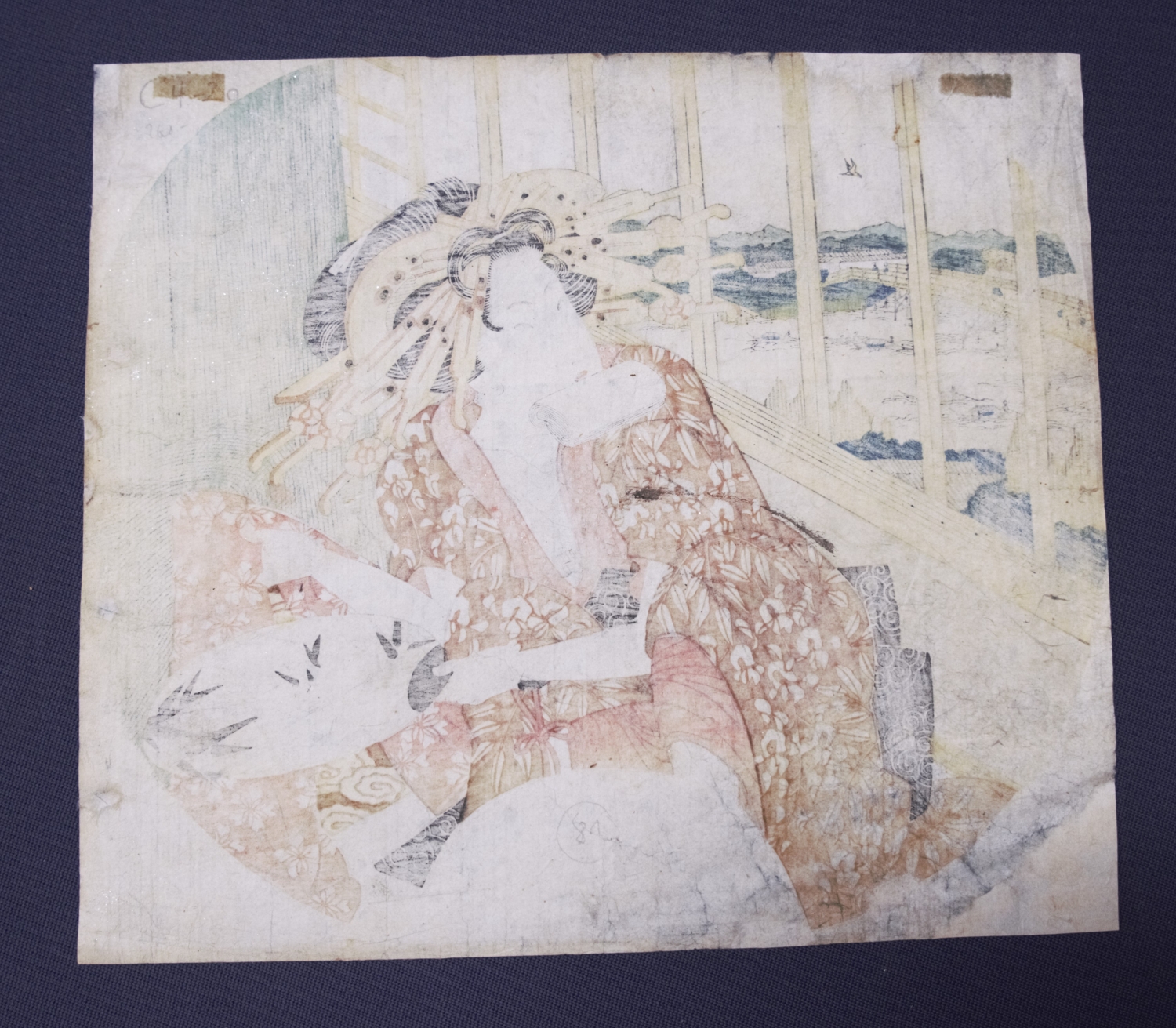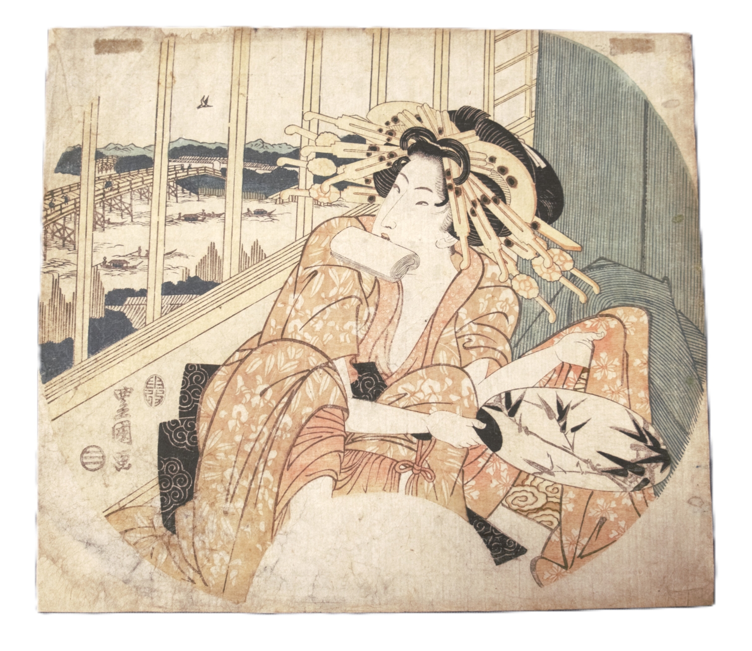 (1769–1825)Geisha sitzend mit Fächer in der Hand.