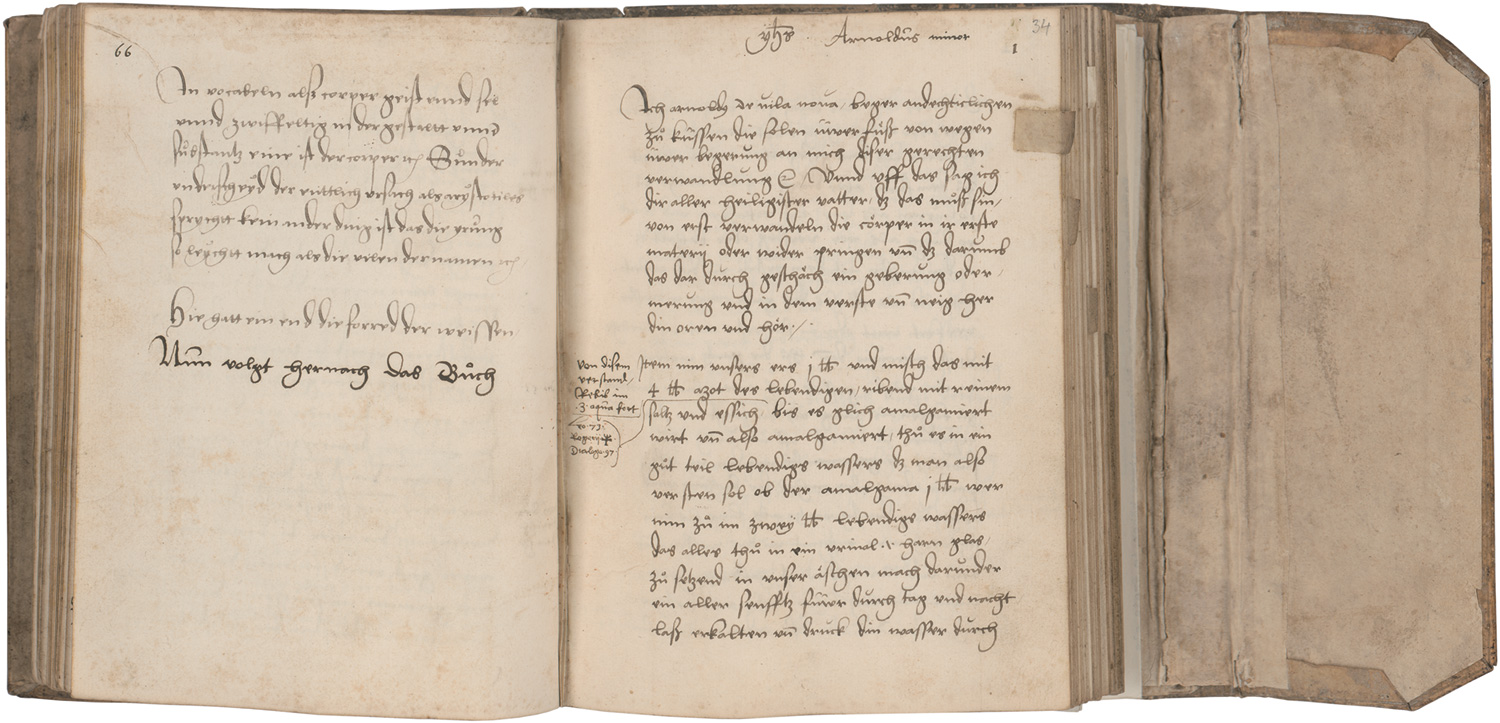 Provenienz: Besitzvermerk des 17. Jhs. ‚Dism Buch ist mein Hans Jacob Maybach‘ (Bl. 7r). Antiquariat Jacques Rosenthal 09/1965. Aus der Sammlung des Heidelberger Germanisten Prof. Dr. Gerhard Eis (1908-1982), hier mit der Signatur Hs. 145. Beiliegend mehrere Briefe und Notizen, teilweise von Gerhard Eis, die Hs. betreffend.