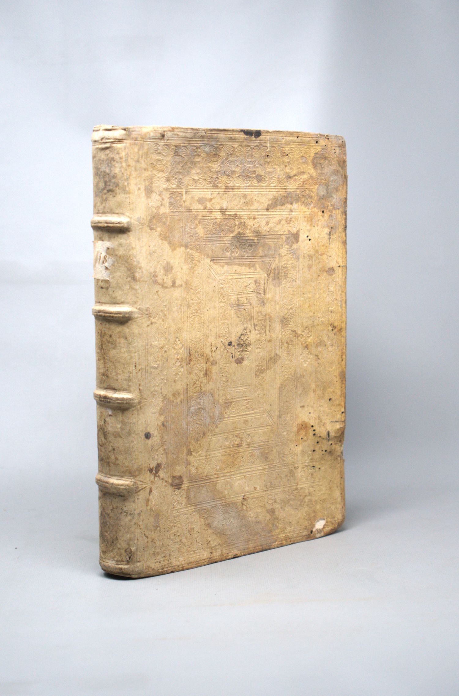 (Hardesheim, Christoph). Consensus orthodoxus sacrae scripturae et veteris eccleasiae, de sententia et veritate verborumcon coenae domenicae. 28 Bl., 200 S. Mit Holzschnitt-Druckermarke auf dem Titel. 31 x 20 cm. Blindgeprägtes Schweinsleder d. Z. (berieben, fleckig, mit Wurmlöchern, geworfen und ohne die Messingschließen) über Holzdeckeln. Zürich, Froschauer, 1578.