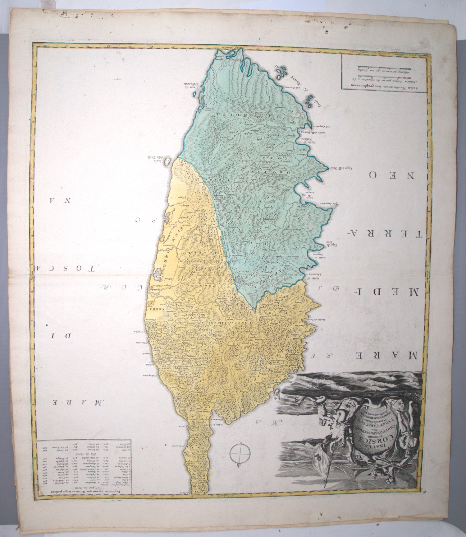 Vorhanden sind: I. Willem Janszoon Blaeu. Calabria Citra olim Magna Graecia. Grenzkoloriert. 1660. - II. Derselbe. Campagna di Roma, olim Latium. Patrimonio di S. Pietro et Sabina. Mit Grenzkolorit. Amsterdam 1640. - III. Derselbe. Calabria ultra olim altera magnae Graeciae pars. Mit Grenzkolorit. Amsterdam 1640. - IV. Derselbe. Terra di Lavoro, olim Campania Felix. Mit Grenzkolorit. Amsterdam, 1644. - V. Georg Braun und Franz Hogenberg. Calaris, Malta, Rhodus, Famaugusta. Köln 1574. - VI. Johann Baptist Homann. Sardiniae Regnum et Insula. Mit Flächenkolorit. Nürnberg 1734. - VII. Derselbe. Peloponesus hodie Moreae regnum. Mit Grenz- und Flächenkolorit. Nürnberg 1730. - VIII. Derselbe. Insula Corsicae accurata Chorographia Tradita. Mit Grenz- und Flächenkolorit. Nürnberg 1735. - IX. Henricus Hondius und Johannes Janssonius. Morea olim Peloponnesus. Koloriert. Amsterdam 1636.