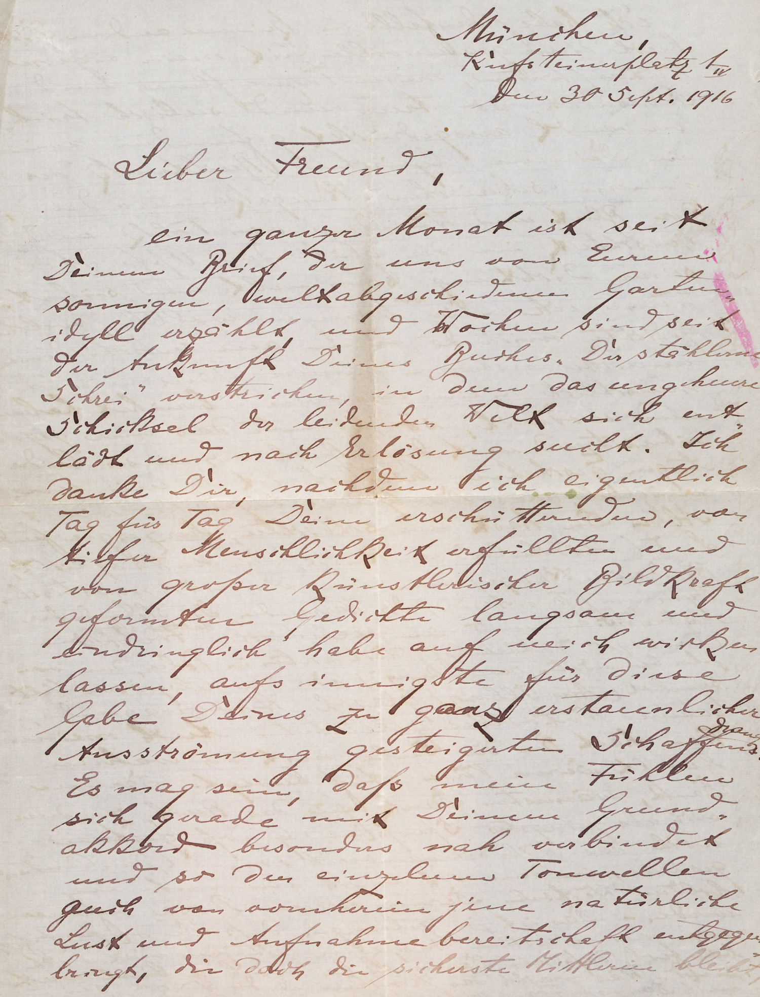 (1864-1929)3 Briefe an den Schriftsteller Alfons Petzold. 1914-1918