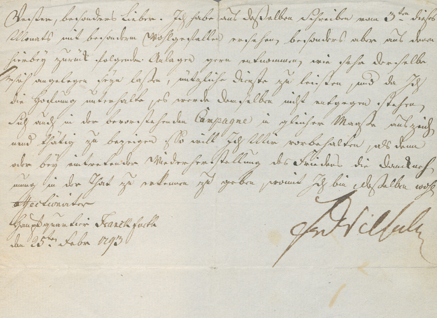 (1744-1797)Brief an einen Gefolgsmann Hauptquartier Frankfurt 1793