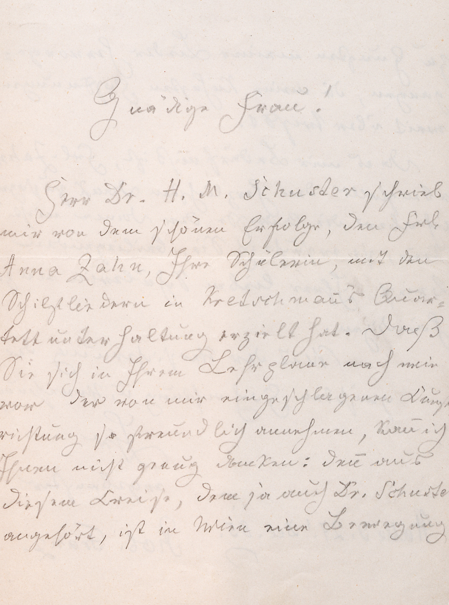 An eine Gesangslehrerin, vermutlich Henny Ohlmann in Frankfurt a. M. "... Herr Dr. H. M. Schuster schrieb mir von dem schönen Erfolge, den Frl. Anna Zahn, Ihre Schülerin, mit den Schilfliedern in Kretschmanns Quartettunterhaltung erzielt hat. Daß Sie sich in Ihrem Lehrplane nach ... der von mir eingeschlagenen Kunstrichtung so freundlich annehmen, kann ich Ihnen nicht genug danken: denn aus diesem Kreise, dem ja auch Dr. Schuster angehört, ist in Wien eine Bewegung zu Gunsten meiner Lieder hervorgegangen, die meine kühnsten Hoffnungen weit übertrifft ...". - Beiliegend der abgeschnittene Adressteil eines eigenhändig von Franz mit seinem Absender beschrifteten Briefumschlags, der an Henny Ohlmann in Frankfurt a. M. adressiert ist. Da das Datum des Poststempels fehlt, ist nicht sicher, ob der Umschlag zu dem Brief gehörte.