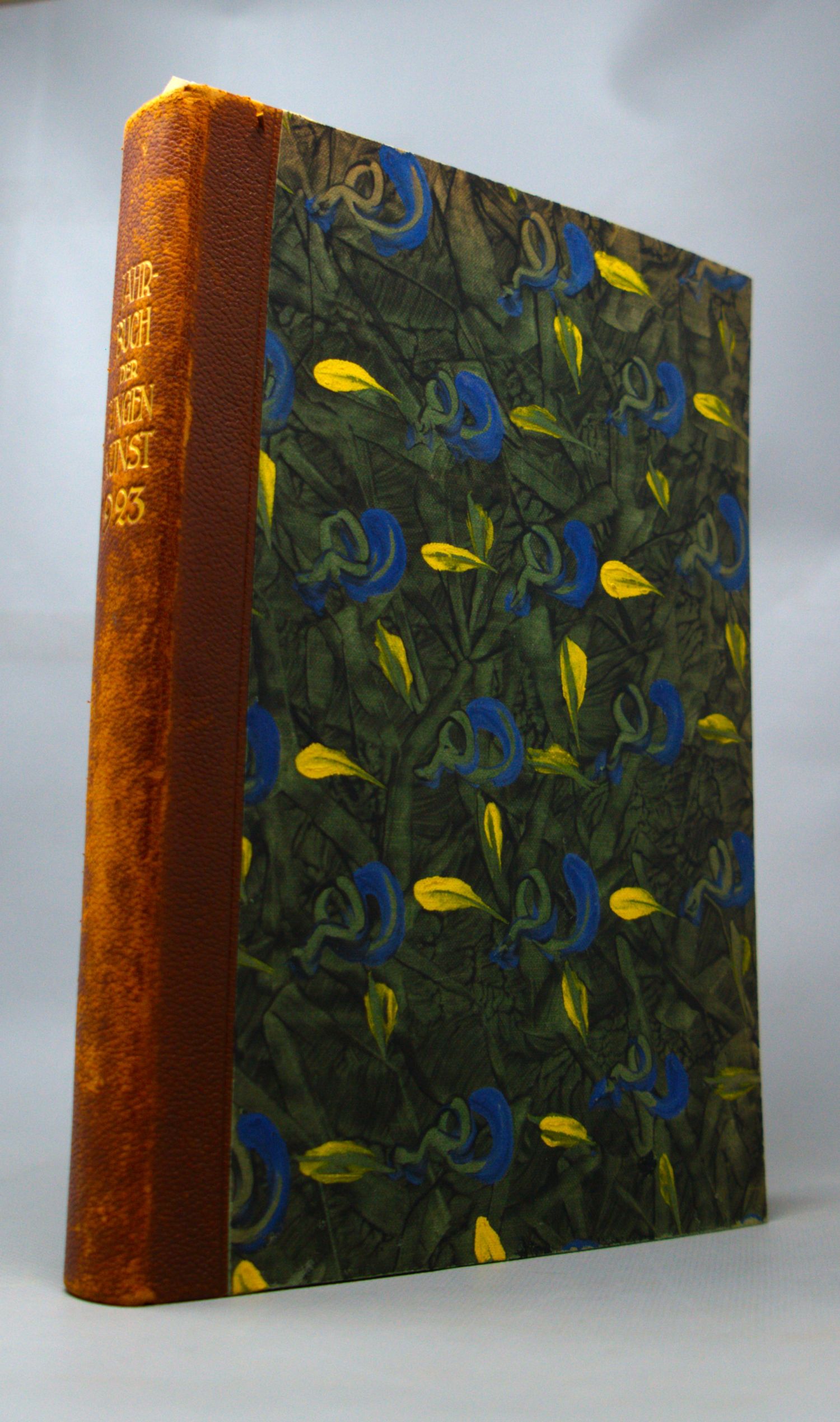 Jahrbuch der Jungen Kunst. Herausgegeben von Georg Biermann. Jahrgang 1923. VIII, 446 Seiten. Mit 7 (6 signierten) Originalgraphiken. 28,5 x 20 cm. OHalbleder (Rücken etwas bestoßen und berieben). Leipzig, Klinkhardt & Biermann, 1923.
