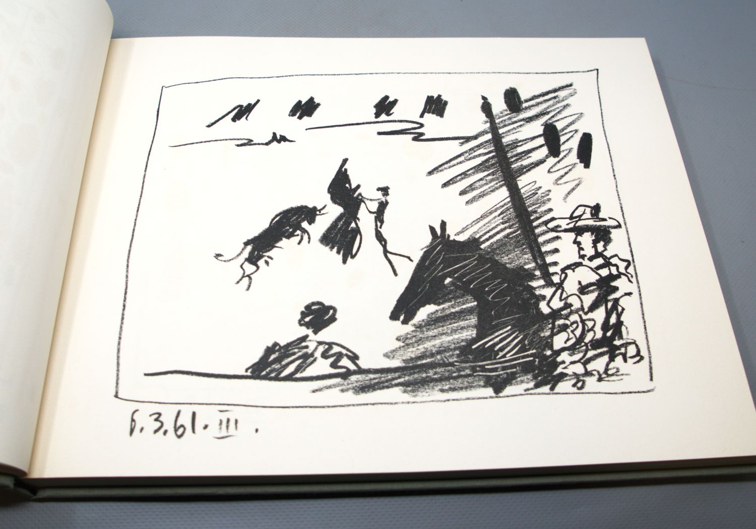 Bloch livres 108. Goeppert-Cramer 113. Mourlot 346 und 348-350. – Erste deutsche Ausgabe. Die vier Original-Lithographien wurden von Picasso eigens für dieses Werk geschaffen und von Mourlot gedruckt: "La Pique" (Bl. 1014), "Jeu de la Cape" (Bl. 1015), "Les Banderilles" (Bl. 1016) und die Farblithographie "Le Picador" (Bl. 1017). – Bemerkenswert schönes, nahezu verlagsfrisches Exemplar.