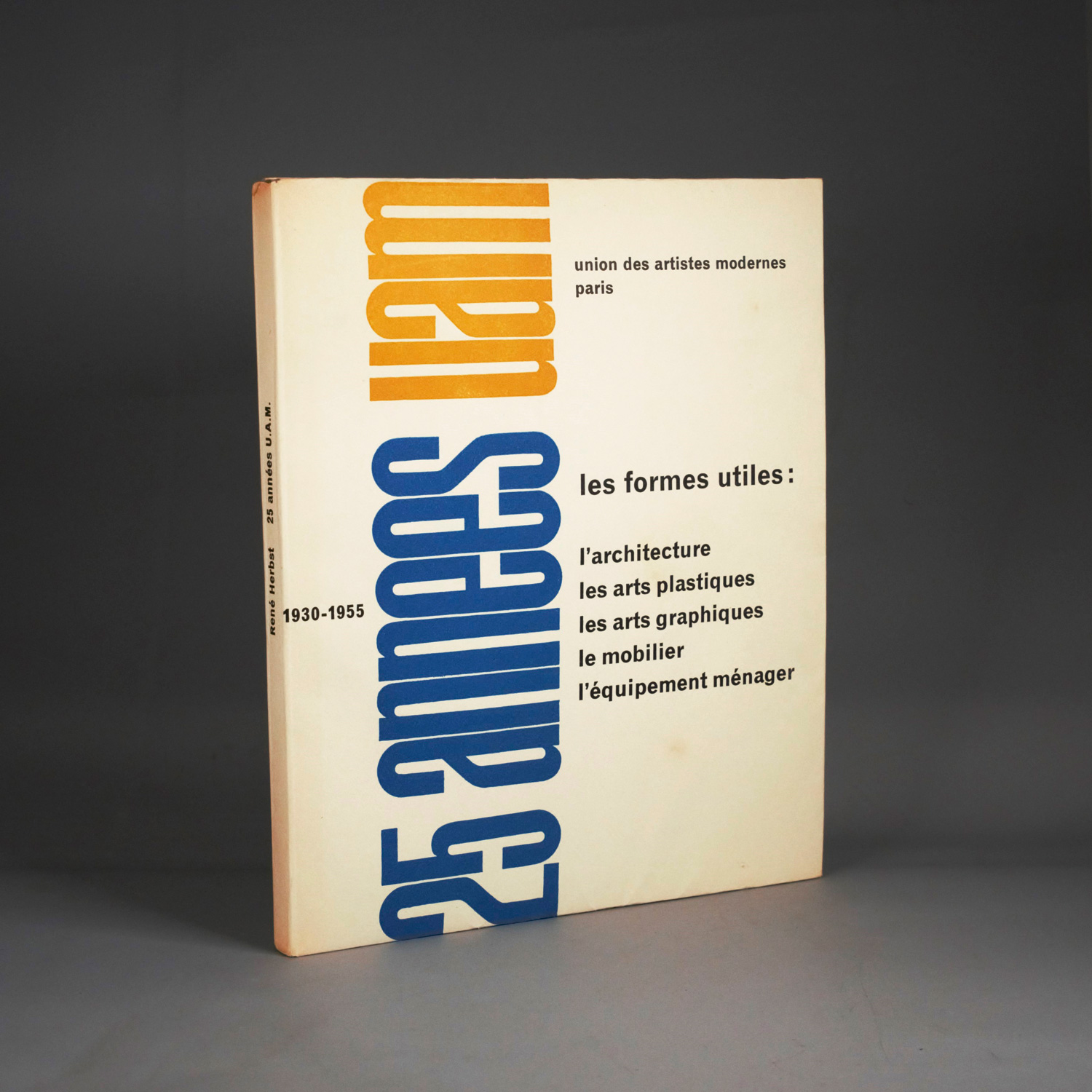 Herbst, René. 25 annees U.A.M. (uam - union des artistes modernes) 1930-1955. Les formes utiles: l'architecture, les arts plastiques, les arts graphiques, le mobilier, l'équipement ménager. 148 S., 2 Bl. Mit zahlreichen Abbildungen. 29 x 24 cm. OKart. Paris, Éditions du Salon des Arts Ménagers, 1956.