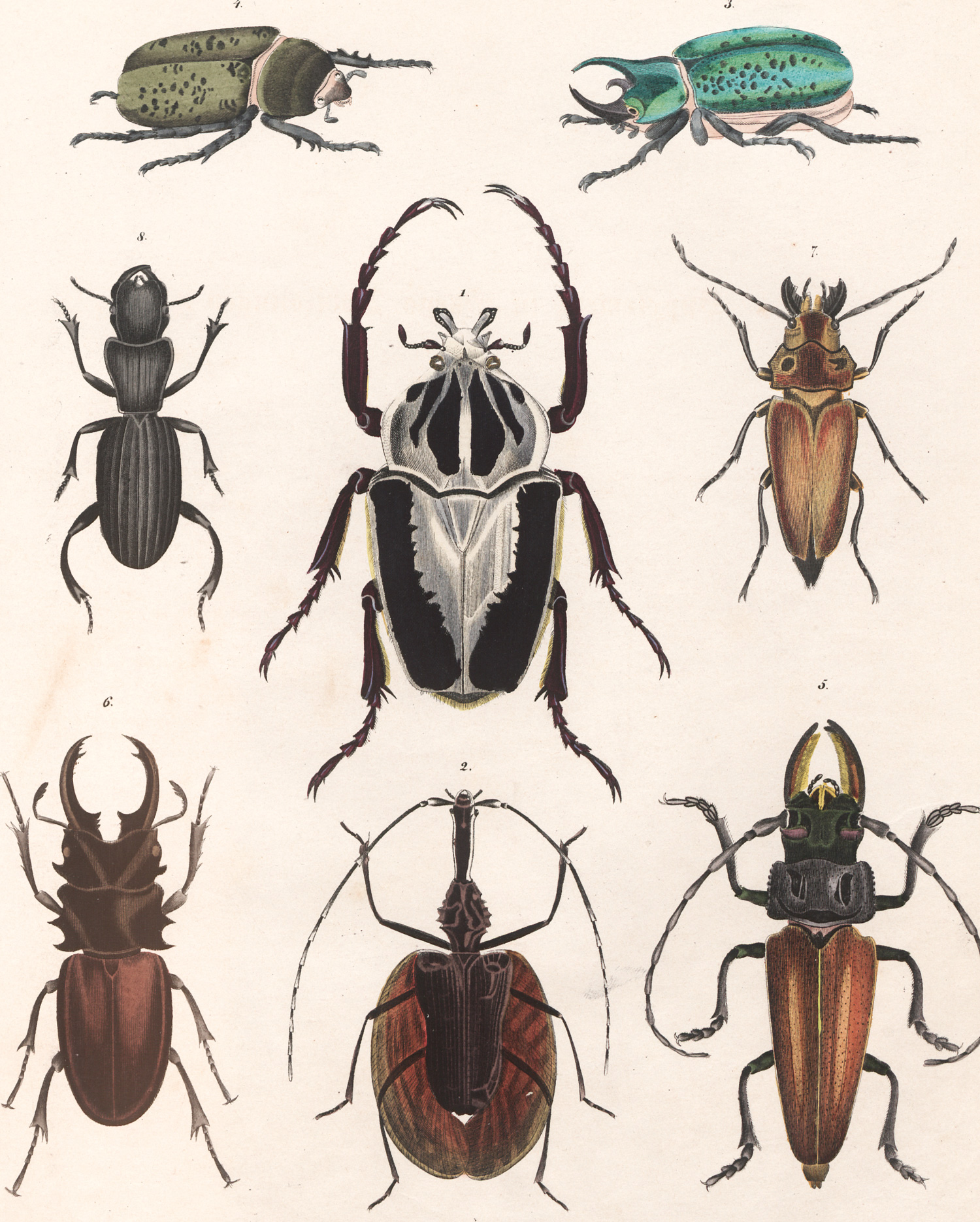 Nissen, ZBI 3006. Anker 375. Horn-Schenkling 16535. Graesse V, 16. Engelmann S. 114. Stuttgart, Hoffmann, 1839-1843. – Mit Tafeln zur Mineralogie, Botanik, Anatomie und Zoologie, mit schönen Abbildungen von Fischen, Schmetterlingen, Vögeln u. a., deren Darstellung geht auf vergleichbare Sachbücher zurückgeht und die noch in der Tradition von Sammlerkabinetten steht. – Titel und Vorsatzblatt knickspurig, teilweise größer feuchtrandig am Fußsteg (wenige Tafeln betroffen), etwas stock- und fingerfleckig sowie vereinzelt mit minimalen Einrissen.