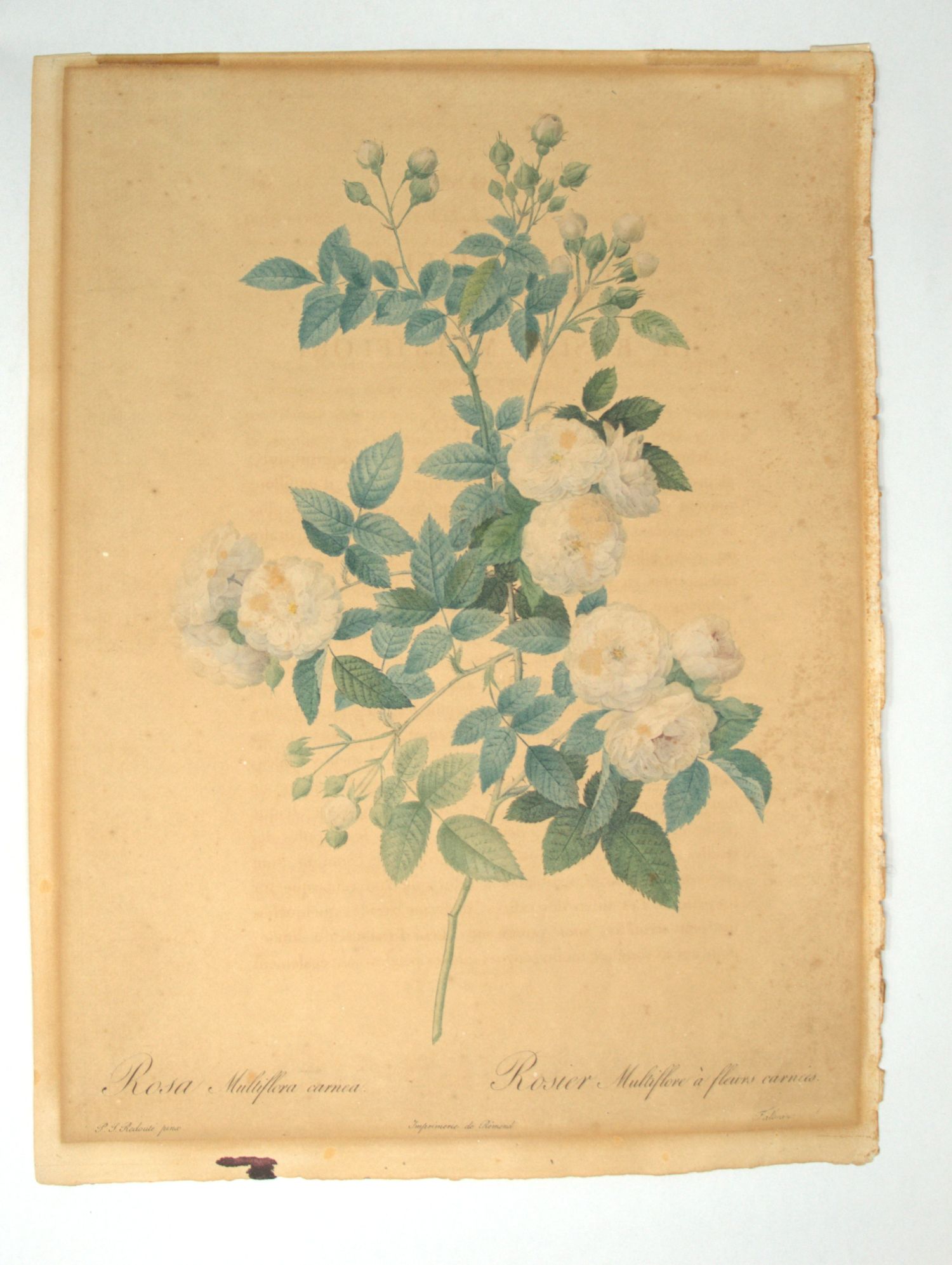 Vgl. Nissen 1599. – Vorhanden sind: "Rosa Indica", "Rosa Multiflora carnea", "Rosa Kamtschatica" und "Rosa Redutea rubescens" aus der Folio-Ausgabe Redoutés einflussreichen Blumenwerks "Les roses". – Nicht ausgerahmt, Versand nur ohne Rahmen. Teils stark gebräunt und etwas fleckig. In der besonderen Technik des Farbstichs und mit zusätzlicher feiner Kolorierung.