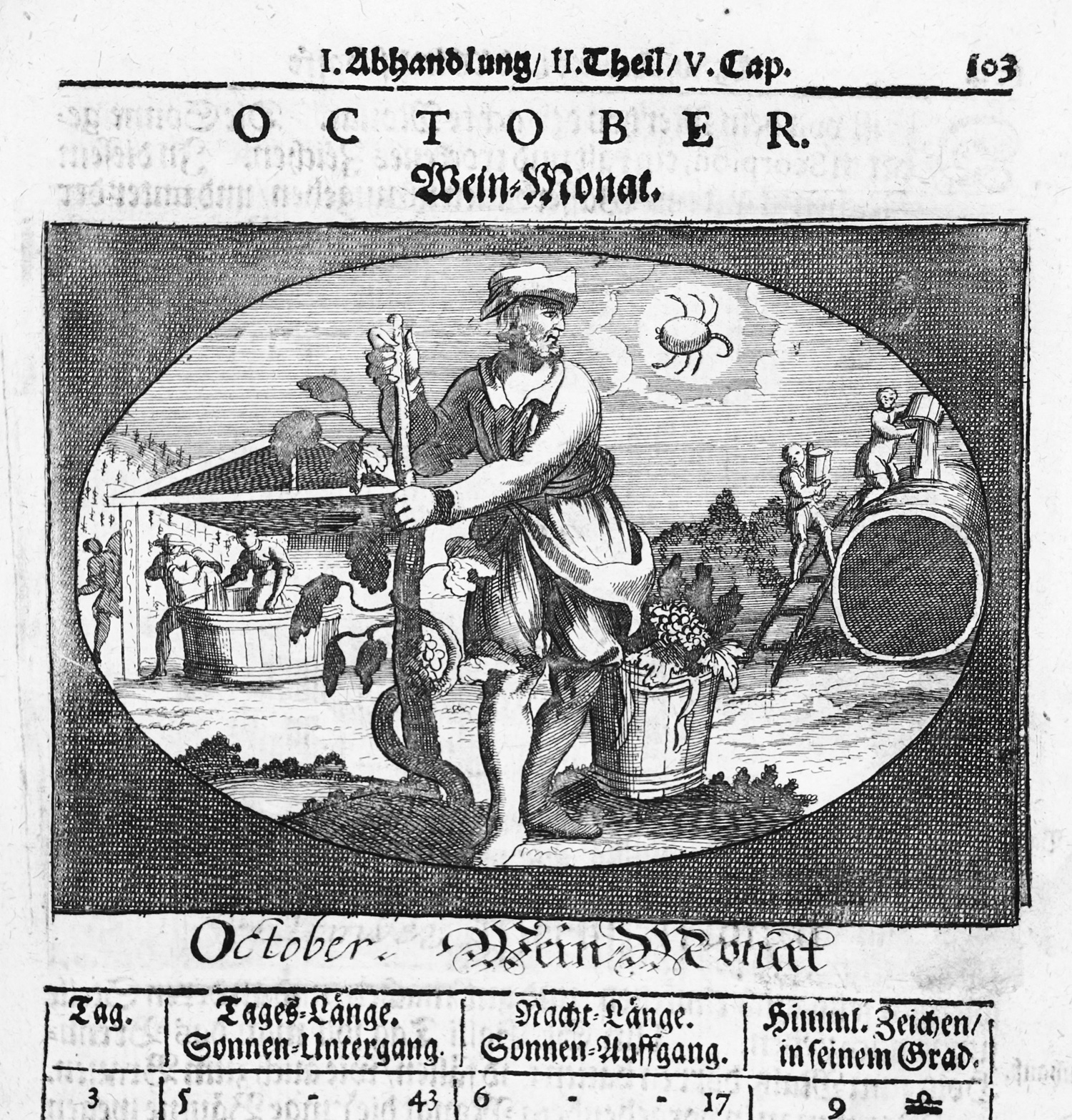VD17 12:118984D. VD17 12:118987B. Horn-Arndt 131. Souhart Sp. 186 . – Erste Ausgabe. Universales Kompendium der Haus- und Landwirtschaft in seiner Zeit. Mit Abhandlungen u. a. über Fisch-Teich, Bierbrauerei, Garten, Obstgärten, Weinberg. Der zweite Teil mit den hübschen Monatskupfern behandelt die jahreszeitlich anfallenden Arbeiten. – Titel mit Bibliotheksstempel "Fürstlich Oettingen-Wallerstein'sche Bibliothek in Seyfriedsberg". Teils papierbedingt gebräunt, etwas stock- und feuchtfleckig und mit Wurmgängen.