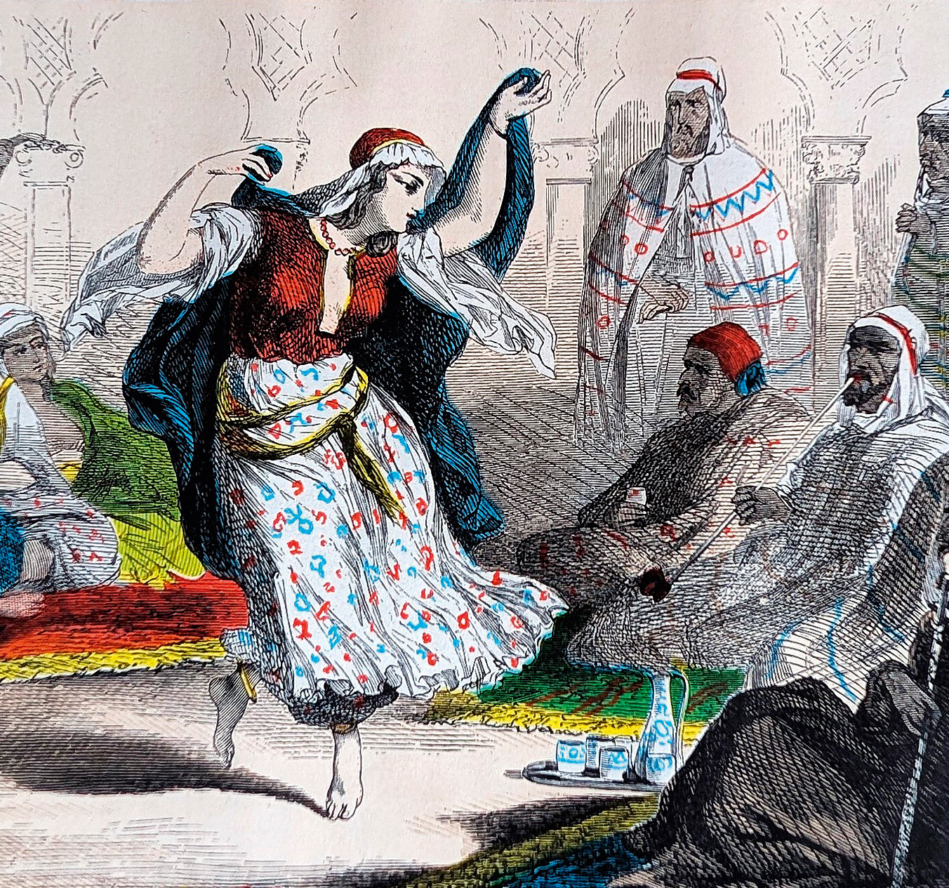 Lilliehöök, John. Zwei Jahre unter den Zuaven. Aus dem Schwedischen von Henrik Helms. VI S., 1 Bl., 264 S. Mit 8 Farbdrucktafeln und Karte. 21,5 x 13,5 cm. Etwas späterer Halbleinenband (etwas berieben und bestoßen, VDeckel gelockert, Rücken defekt; mit montierten ODeckelbezügen). Leipzig, Wolfgang Gerhard, 1863.