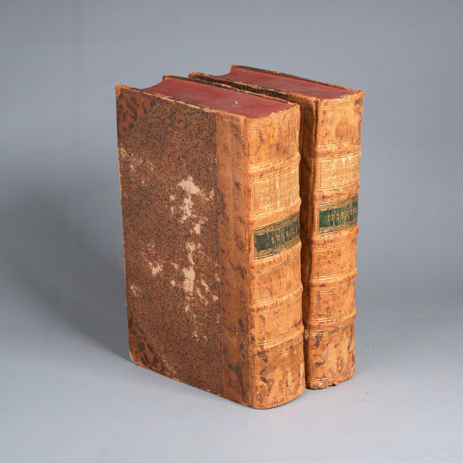Süssmilch, Johann Peter. Die göttliche Ordnung in den Veränderungen des menschlichen Geschlechts, aus der Geburt, dem Tode und der Fortpflanzung desselben erwiesen. 3. verbesserte Ausgabe. 2 Bände. 4 Bl., XVI, 576, 130 (recte 114) S., 1 Bl.; 1 Bl., 625, 77 S., 1 Bl. Mit mehrfach gefalteter Tabelle. Halbleder d. Z. (etwas beschabt und bestoßen) mit 2 goldgeprägten RSchildern. Berlin, (Winter für die) Realschulbuchhandlung, 1765.